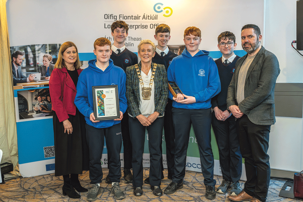 The Sustainability Award went to Peco Electronics from Rockbrook Park, Rathfarnham, the Endeavour Award went to the Rehurled from Coláiste Éanna, Rathfarnham, and the One To Watch Award went to Nutri Track from Coláiste Bríde, Clondalkin.