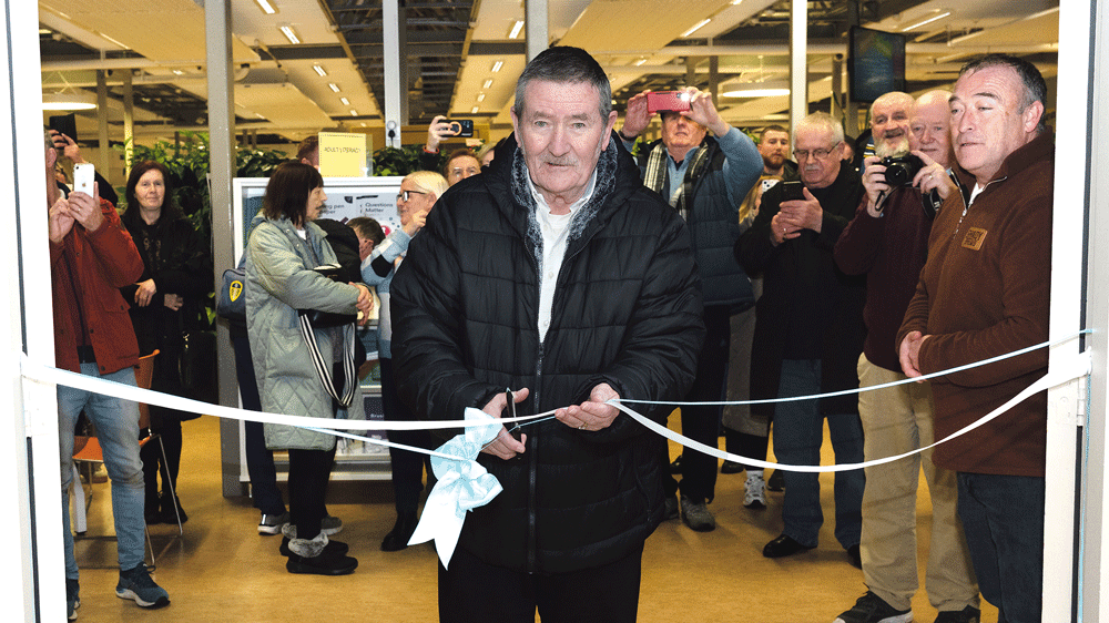 Paddy O’Sullivan cuts the ribbon at the launch of the exhibition