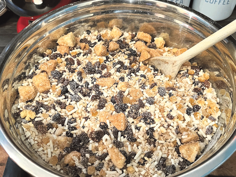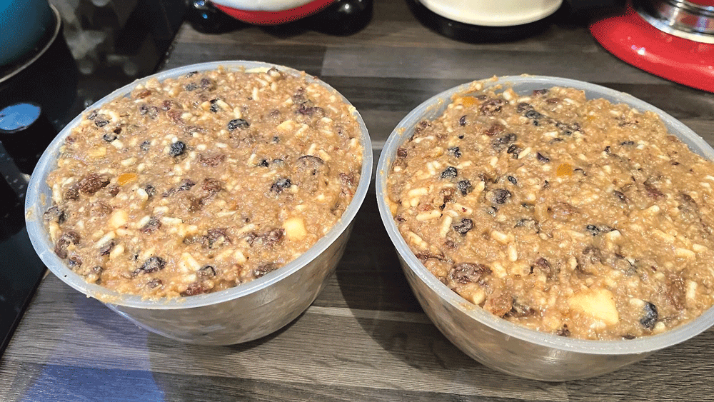 - If you can leave overnight to allow the flavours to infuse and the dried fruits to plump up! Cover the bowl with a clean, dry tea towel and leave overnight.