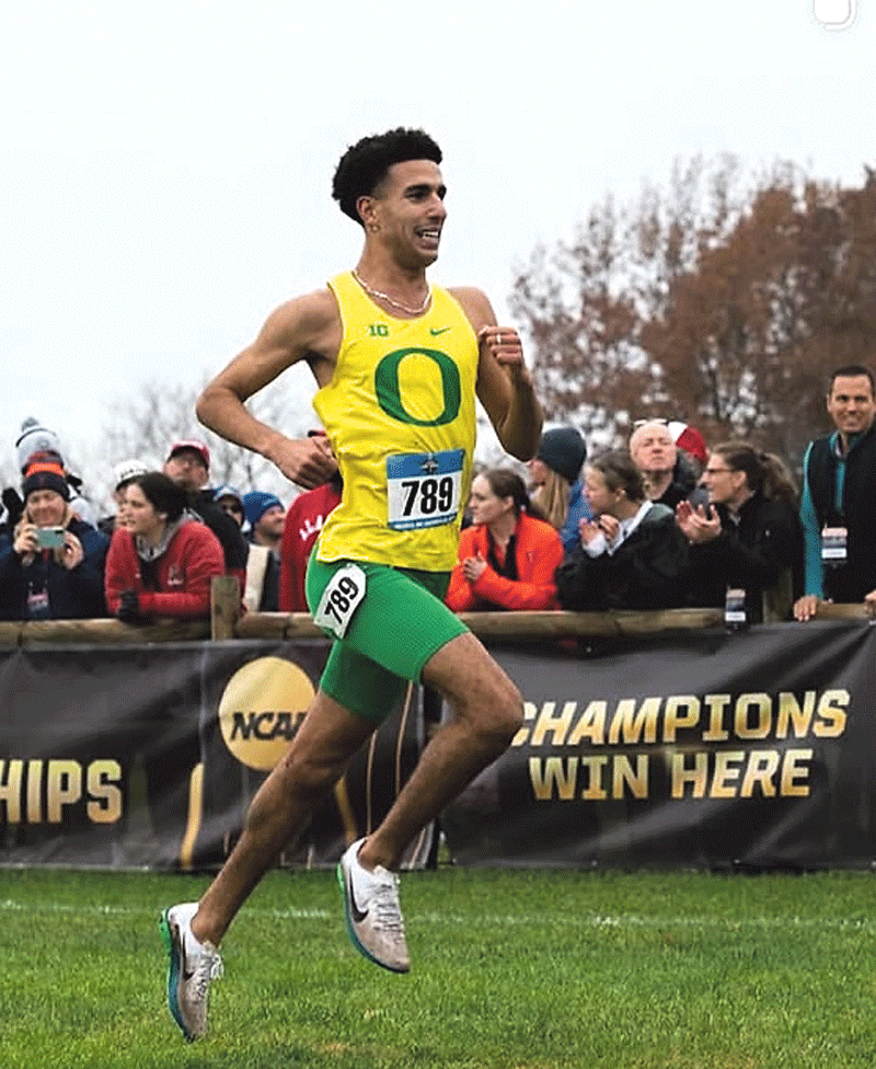Laadjel’s Oregon University Ducks team, having led in the early stages, fell back in the second-half of the race and had to settle for 5th place out of 32.