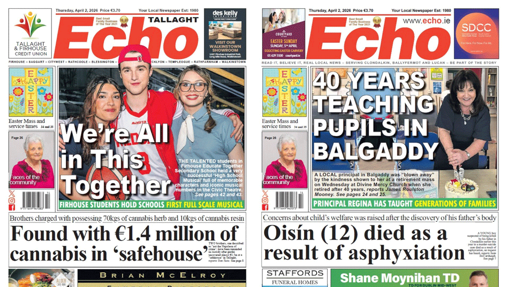 LatestThe Echo is out today! You’ll find the latest edition on shelves across Tallaght, Clondalkin, Lucan, Ballyfermot and neighbouring areas.Support local journalism by picking up...