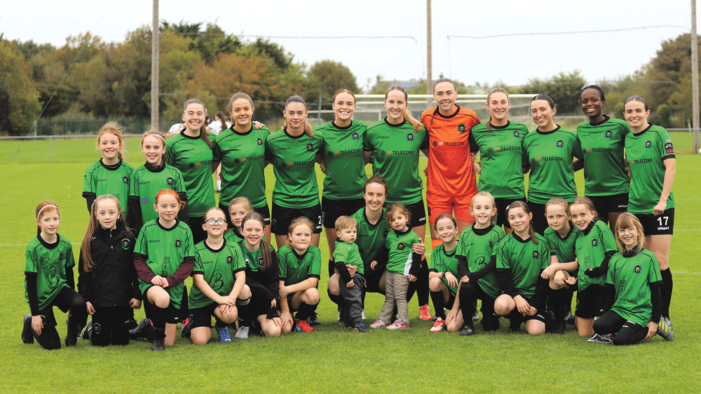 Peamount Starting eleven with the mascots Photos by Bartley Ramsay