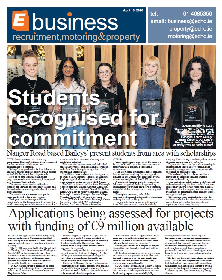 The Echo is out today! You’ll find the latest edition on shelves across Tallaght, Clondalkin, Lucan, Ballyfermot and neighbouring areas.