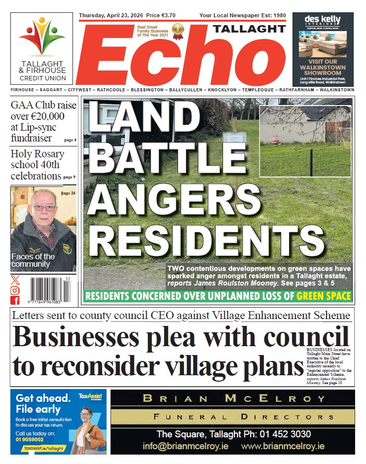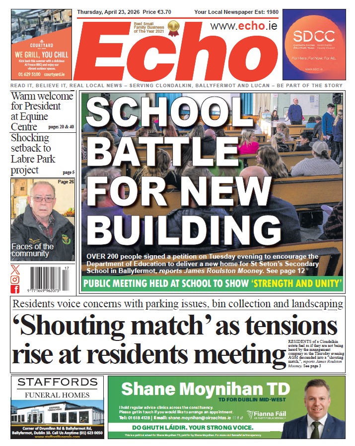 The Echo is out today! You’ll find the latest edition on shelves across Tallaght, Clondalkin, Lucan, Ballyfermot and neighbouring areas.
