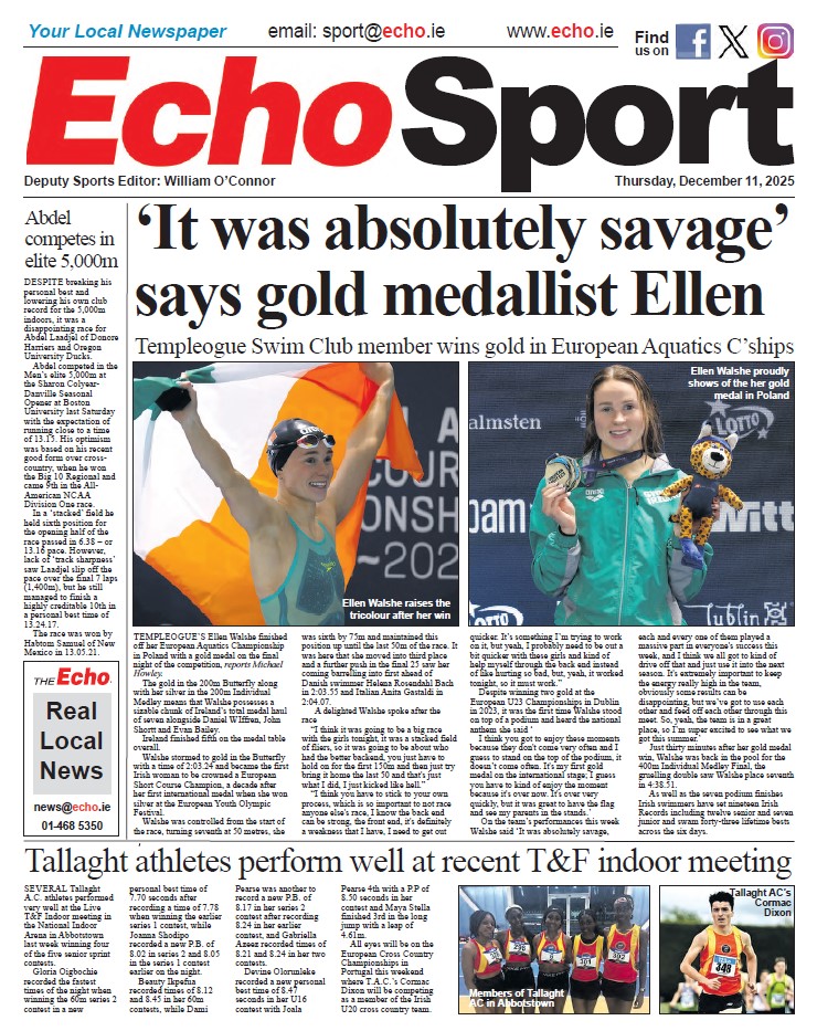 The Echo Newspaper is on shop shelves across Tallaght, Clondalkin, Lucan, Ballyfermot and surrounding areas today.