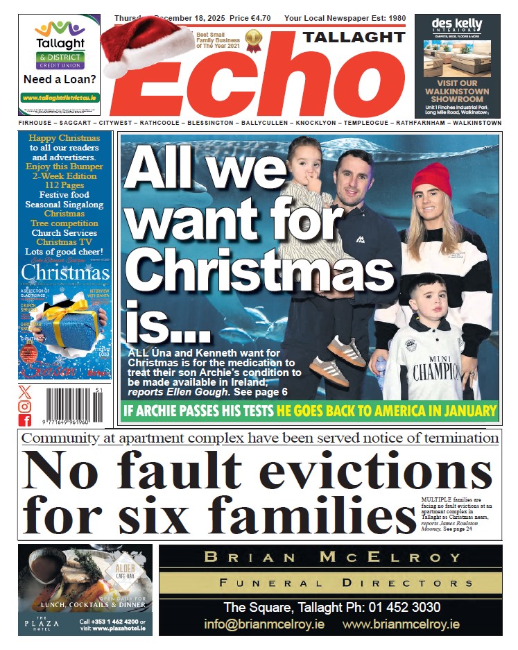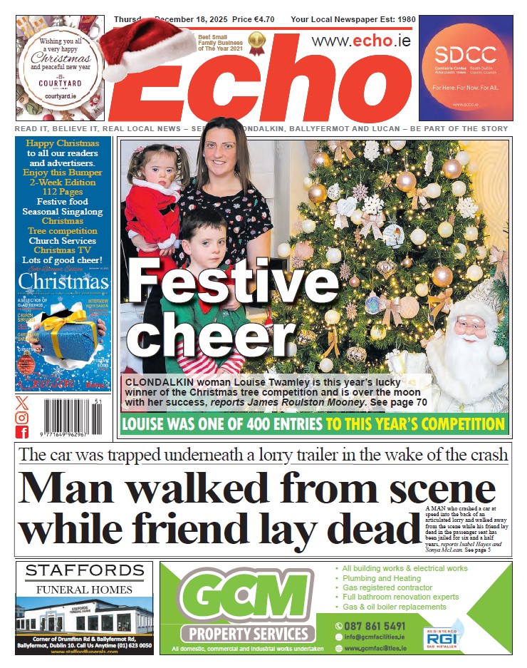 The Echo Newspaper Christmas Bumper Edition is on shop shelves across Tallaght, Clondalkin, Lucan, Ballyfermot and surrounding areas today.