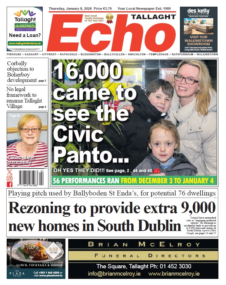 The Echo Newspaper is on shop shelves across Tallaght, Clondalkin, Lucan, Ballyfermot and surrounding areas today.