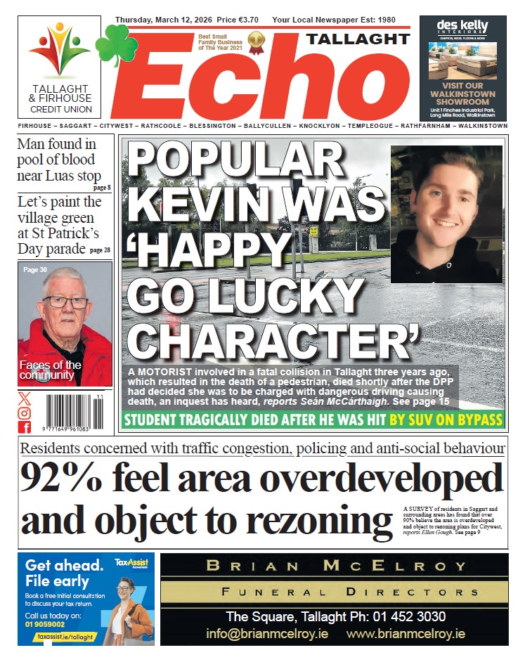 The Echo is out today! You’ll find the latest edition on shelves across Tallaght, Clondalkin, Lucan, Ballyfermot and neighbouring areas.