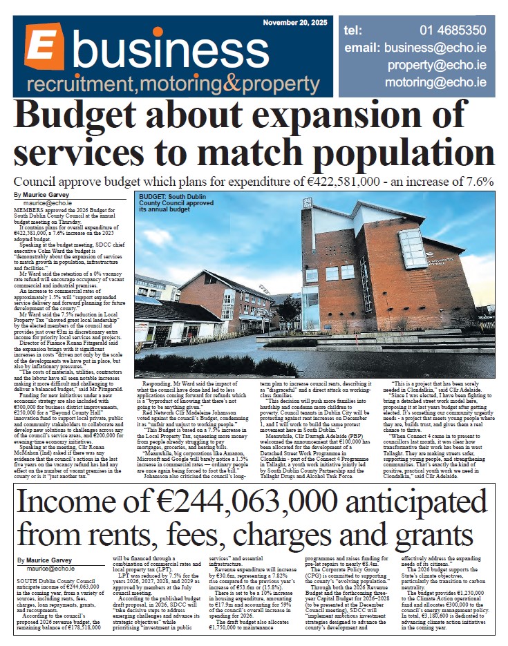 The Echo Newspaper is on shop shelves across Tallaght, Clondalkin, Lucan, Ballyfermot and surrounding areas today.