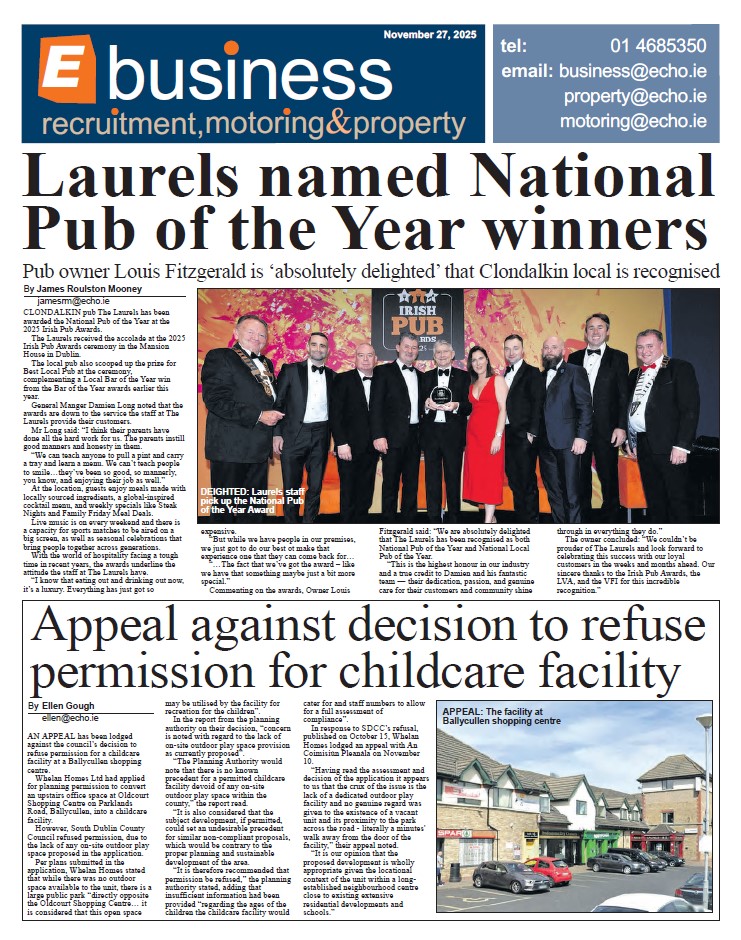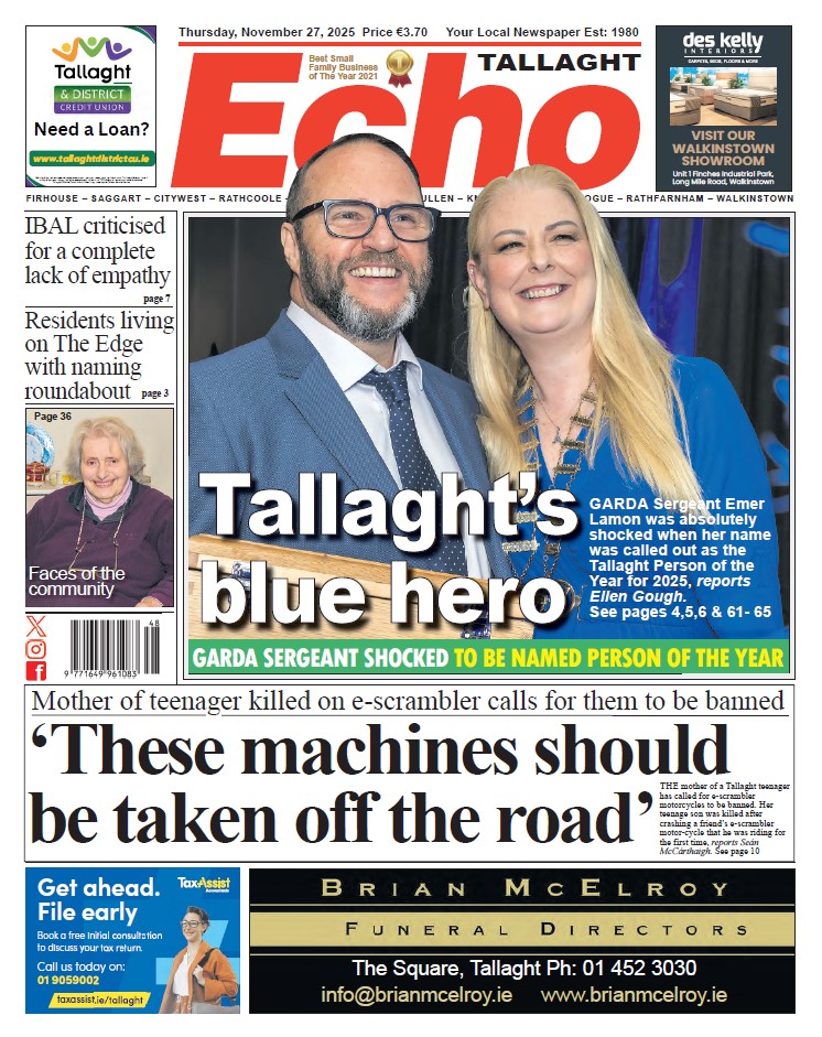 The Echo Newspaper is on shop shelves across Tallaght, Clondalkin, Lucan, Ballyfermot and surrounding areas today.