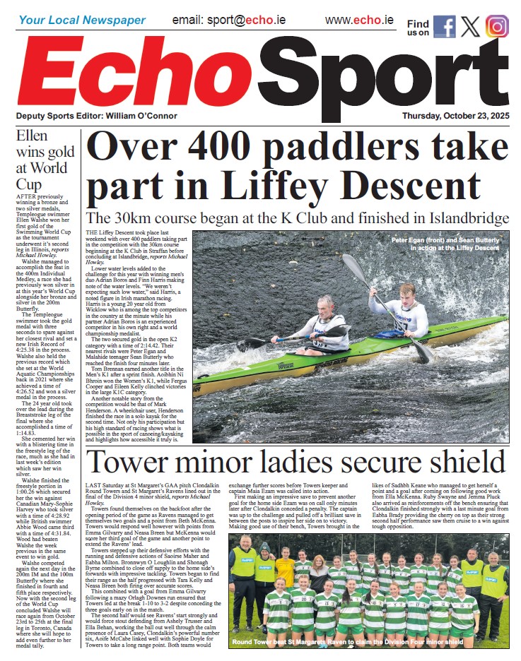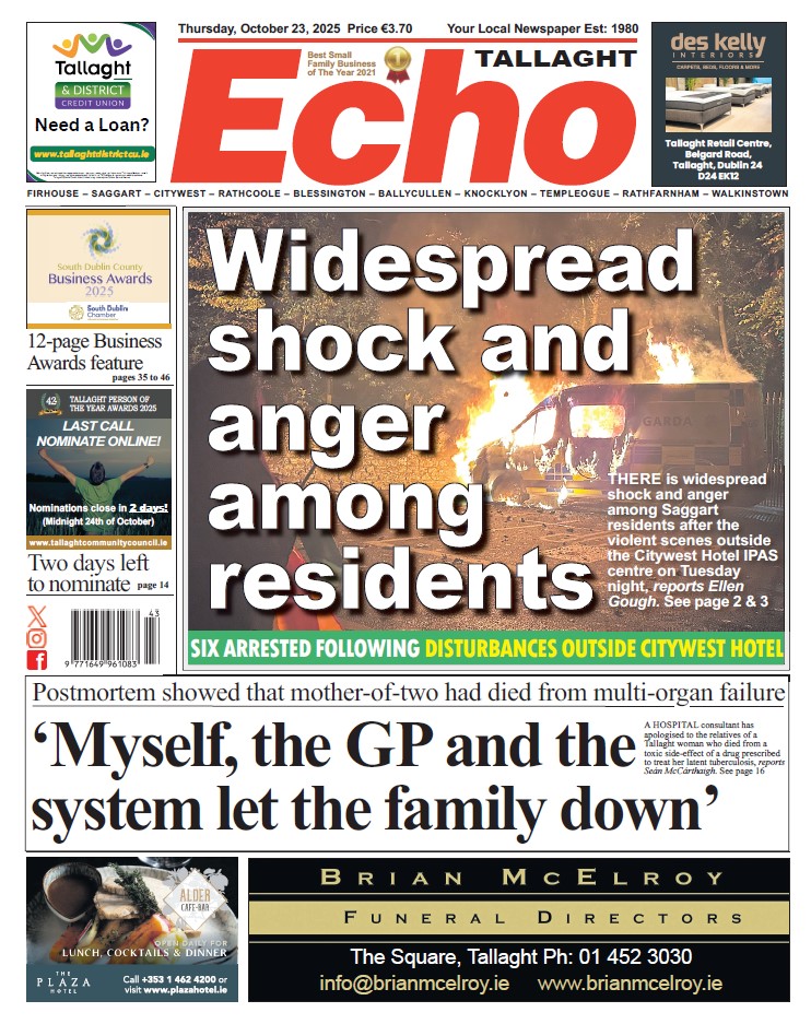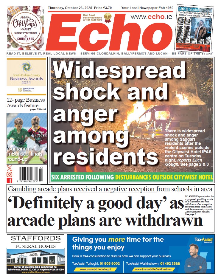 The Echo Newspaper is on shop shelves across Tallaght, Clondalkin, Lucan, Ballyfermot and surrounding areas today.
