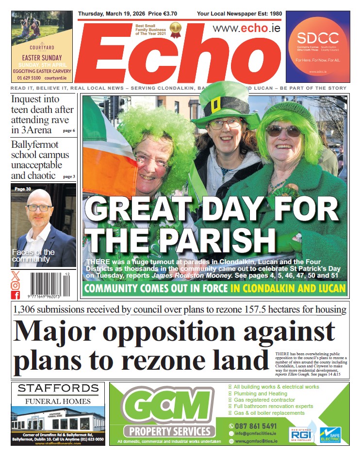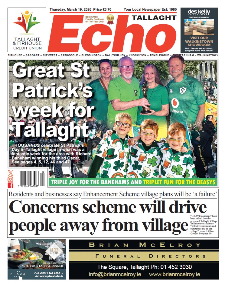 The Echo is out today! You’ll find the latest edition on shelves across Tallaght, Clondalkin, Lucan, Ballyfermot and neighbouring areas.
